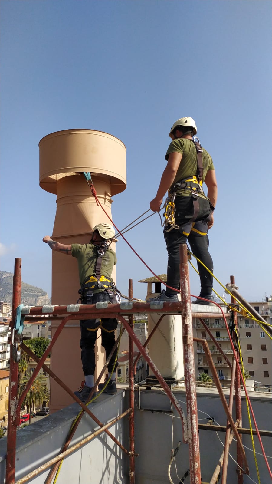La Ditta Vertical Service si occupa dell installazione e manutenzione delle canne fumarie in quota su fune, attraverso interventi di edilizia verticale/ edilizia acrobatica. Si tratta di un intervento edilizio di manutenzione ordinaria che i nostri operatori specializzati su fune effettuano stando appesi ad una corda, assicurata a punti di ancoraggio appositamente allestiti.